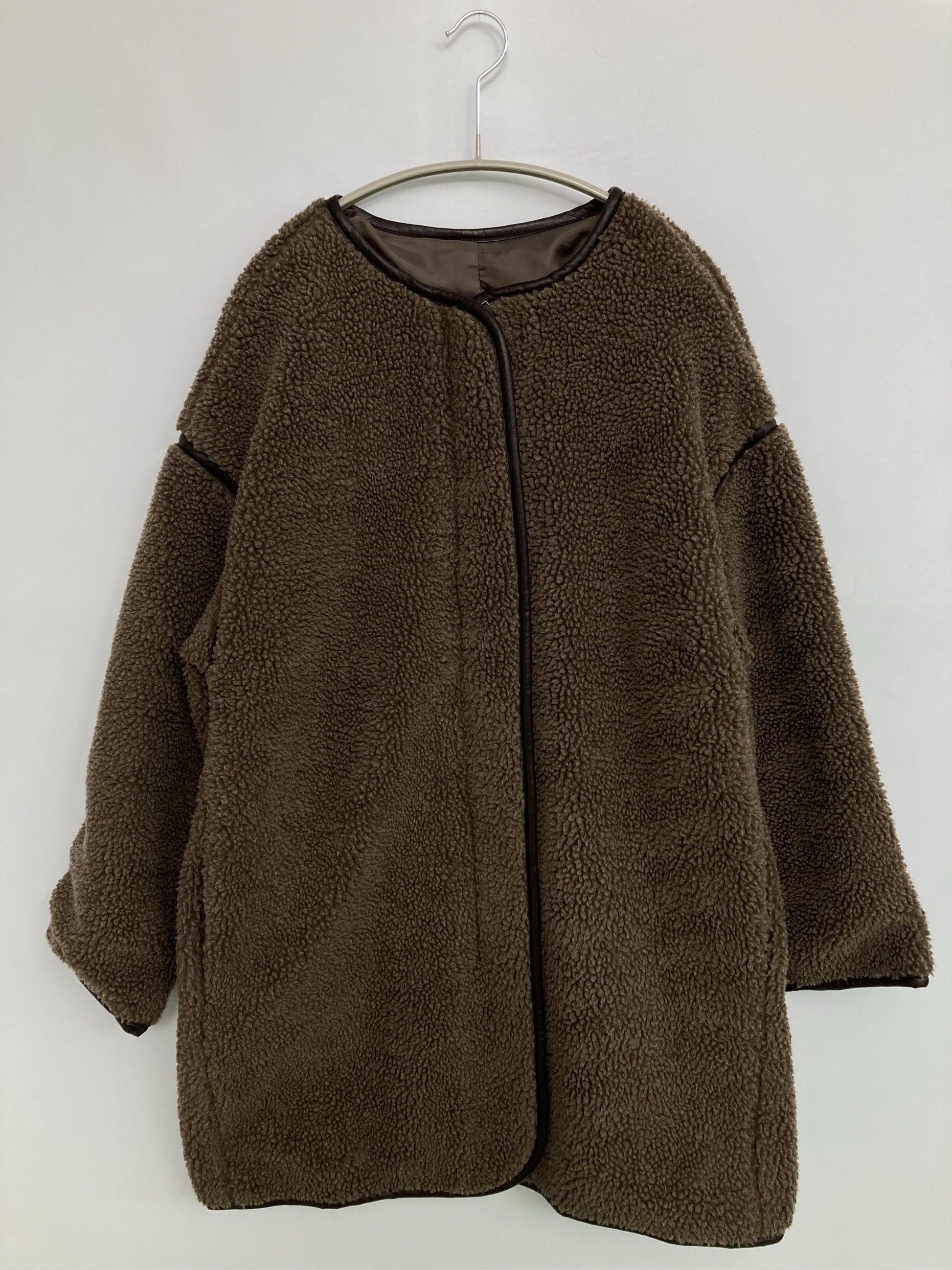 ノーカラーコート/ジャケット/アウター/ブラウン/L